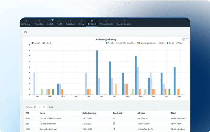 Sparen Sie wertvolle Zeit durch digitalisierte Patientenaufnahme und Datenübernahme.