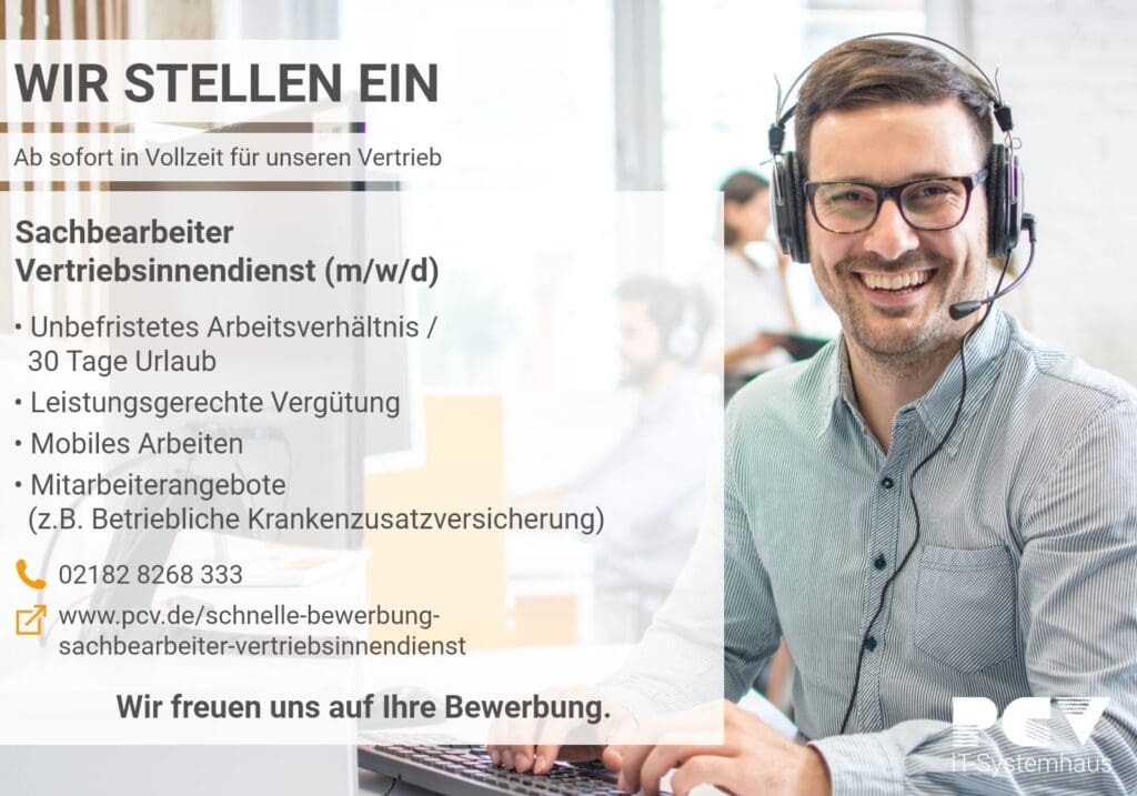 Weitere Stellenangebote unter https://pcv.de/jobs/.